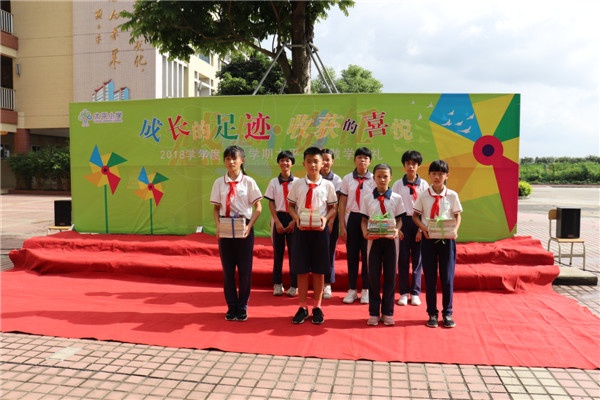 接下來,伴隨著歡快喜悅的音樂,頒發(fā)了本學(xué)期的“優(yōu)秀學(xué)子”、“自律之星”、“五星中隊”獎。孩子們手捧獎狀,露出張張笑臉,自豪地走上紅毯,體會收獲的喜悅。