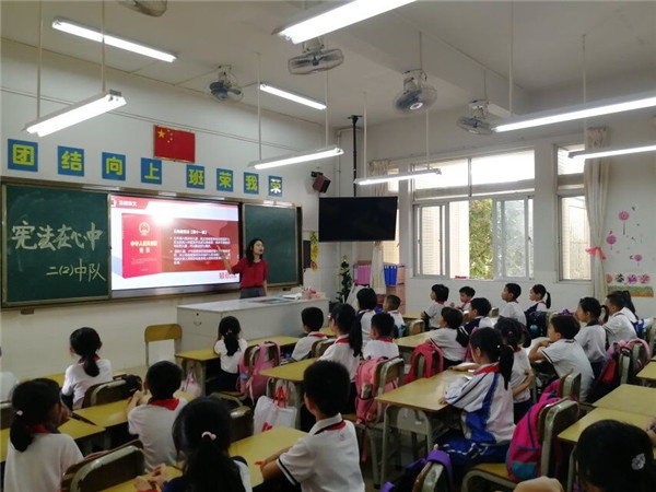 同學們在不斷的學習和討論中明白了憲法的重大意義:現(xiàn)行憲法,是黨中央從新時代堅持和發(fā)展中國特色社會主義全局和戰(zhàn)略高度作出的重大決策,也是推進全面依法治國、推進國家治理體系和治理能力現(xiàn)代化的重大舉措。大家在學習中獲得了一定的共識,還提高了思想認識: 法律是青少年健康成長的保護神,也是作為一個小公民必須遵守的行為準則,每個少年兒童都要認真學法,做一個遵紀守法的好學生 。
