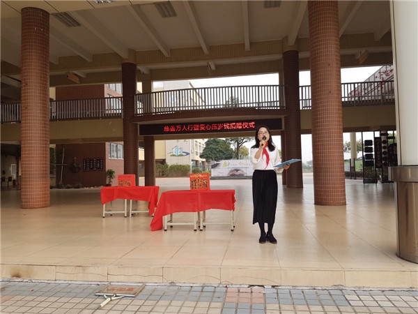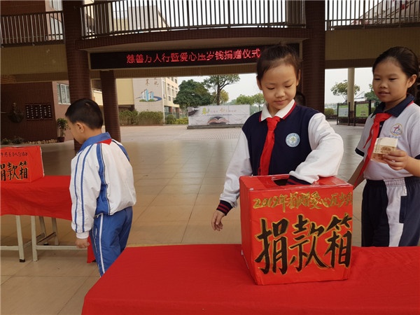 在捐款儀式上,學校少先隊大隊長輔導員梁巧老師用一段熱情洋溢、充滿真情的開場白向大家作動員講話,呼吁全體少先隊員弘揚中華民族傳統(tǒng)美德,積極響應市鎮(zhèn)的號召,并宣布捐款活動開始。