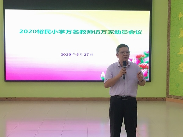 為了進(jìn)一步加強(qiáng)家校聯(lián)系,了解疫情期間孩子們居家生活上及學(xué)習(xí)上的情況,根據(jù)中山市教育和體育局《關(guān)于開(kāi)展“萬(wàn)名教師訪萬(wàn)家”大型家訪活動(dòng)的通知》精神, 5月27日下午,裕民小學(xué)羅東校長(zhǎng)組織全體教師集中階梯室召開(kāi)動(dòng)員大會(huì),要求領(lǐng)導(dǎo)帶隊(duì)、教師全員參與,積極開(kāi)展家訪活動(dòng)。