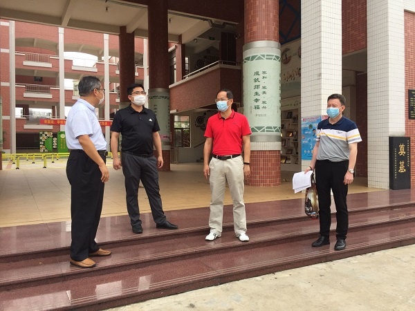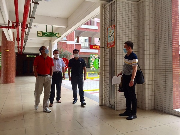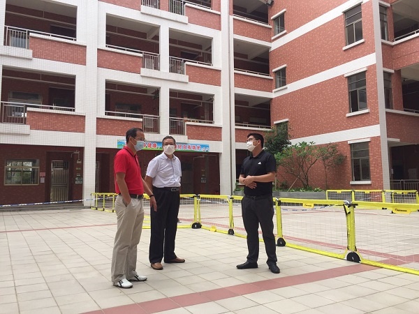 梁銳強委員一行到達裕民小學后,在羅東校長的陪同下察看了家長接送緩沖區(qū)、測溫設備、臨時健康觀察室、校醫(yī)室、洗手設施、防疫物資儲備等。梁委員邊看邊詳細詢問,“現(xiàn)在學生都返回中山了嗎?”“學生每天都堅持在智立方打卡申報健康嗎?”“教職工、家長的粵康碼申報情況還順利嗎?”“目前防疫物資儲備還有什么困難嗎?”在得到確切的一一答復后,他對裕民小學的返校復學準備工作給予了肯定。此后,他還不忘向羅東校長特別叮囑:“師生馬上就要返校了,既要關(guān)心他們身體上的健康,也要關(guān)注大家的心理調(diào)適問題。做到平平安安返學校,開開心心教與學。”