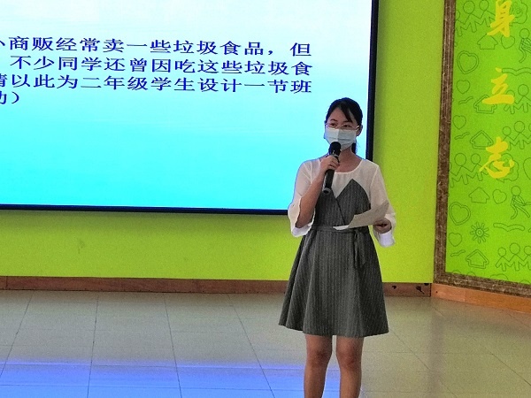 主題班會(huì)設(shè)計(jì)環(huán)節(jié),六位選手分別從自己所抽到的題目出發(fā),分析問題。進(jìn)而根據(jù)自己的分析與理解從班會(huì)活動(dòng)目標(biāo)、課前準(zhǔn)備、課件與教學(xué)環(huán)節(jié)、學(xué)生年齡階段特征、教育方式方法等方面著手設(shè)計(jì)班集體活動(dòng)。羅東校長(zhǎng)、溫小玲副校長(zhǎng)以及黃蓉主任分別在參賽選手們展示完自己所設(shè)計(jì)的主題班會(huì)之后,對(duì)每一位選手從主題的時(shí)代性和教育性、內(nèi)容的針對(duì)性和實(shí)效性等方面進(jìn)行了更深入的提問并給予細(xì)致的點(diǎn)評(píng)。