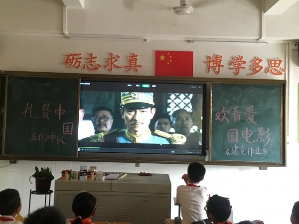 今年是中華人民共和國成立70周年,為了慶祝這一偉大的日子,9月25日上午,裕民小學(xué)全體師生觀看了關(guān)于弘揚(yáng)愛國主義的視頻,學(xué)校推薦有五部愛國影片,分別是:《建黨偉業(yè)》、《雞毛信》《小兵張嘎》、《董存瑞》、《英雄小八路》。各個(gè)中隊(duì)根據(jù)年齡層次的不同分別選取不同的愛國影片觀影。師生聚精會神地觀看,情緒隨著電影情節(jié)的變化而變化。影片里不僅有戰(zhàn)士之間的兄弟情誼,有感人肺腑的親情,也飽含著對祖國的熱愛之情,更有對世界和平的大國擔(dān)當(dāng)和責(zé)任之情?;顒蛹ぐl(fā)了同學(xué)們決心要好好學(xué)習(xí),掌握本領(lǐng),立志報(bào)國的思想感情,同時(shí)也使同學(xué)們懂得了今天人們呼喚“珍愛和平”的現(xiàn)實(shí)意義。