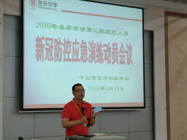5月10日下午,東升中學(xué)召開專題工作會(huì)議,會(huì)后舉行第三次新冠防控應(yīng)急演練活動(dòng)。該校全體行政人員和七八年級(jí)所有教師參加上述會(huì)議與活動(dòng)。此次專題工作會(huì)議分為兩大部分:一是七八年級(jí)的班主任會(huì)議;二是七八年級(jí)全體教師新冠防控應(yīng)急演練動(dòng)員會(huì)議。在班主任會(huì)議會(huì)上,東升中學(xué)馮釗順副校長(zhǎng)總結(jié)分析了該校第一批學(xué)生返校復(fù)學(xué)情況,及時(shí)調(diào)整工作重點(diǎn)和對(duì)策,并具體部署第二批學(xué)生返校復(fù)學(xué)準(zhǔn)備工作。在新冠防控應(yīng)急演練動(dòng)員會(huì)議上,東升中學(xué)吳耀光校長(zhǎng)強(qiáng)調(diào):一是要大力營造一個(gè)指揮順暢的返校復(fù)學(xué)工作局面,逐一排查落實(shí),查漏補(bǔ)缺,確保第二批學(xué)生返校復(fù)學(xué)工作涉及到的疫情防控、物資保障、校園安全、食品安全等工作落實(shí)到位。二是要高標(biāo)準(zhǔn)嚴(yán)要求開展 “全覆蓋、無死角”校園衛(wèi)生整治活動(dòng),合理利用各方資源,優(yōu)化調(diào)整教室、食堂、宿舍等功能場(chǎng)所,為師生提供一個(gè)清潔衛(wèi)生安全的校園環(huán)境。三是要做好家校聯(lián)系,主動(dòng)和教師溝通了解孩子在校狀態(tài)。請(qǐng)家長(zhǎng)們信任孩子,信任老師,信任學(xué)校;四是要關(guān)注重點(diǎn)群體和特殊學(xué)生,加強(qiáng)心理教育和疏導(dǎo),確保關(guān)心關(guān)懷到位,做到“一生一檔”;同時(shí),對(duì)于困難家庭學(xué)生,要給予適當(dāng)?shù)膸头?。接著,該校德育處黎國明副主任針?duì)第二批學(xué)生返校后如何有效落實(shí)疫情防控措施、如何甄別現(xiàn)階段普通傳染病防控、如何教育引導(dǎo)學(xué)生養(yǎng)成勤洗手講衛(wèi)生良好習(xí)慣等方面進(jìn)行了有益的指導(dǎo)和提出了具體的要求。