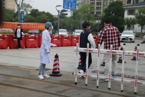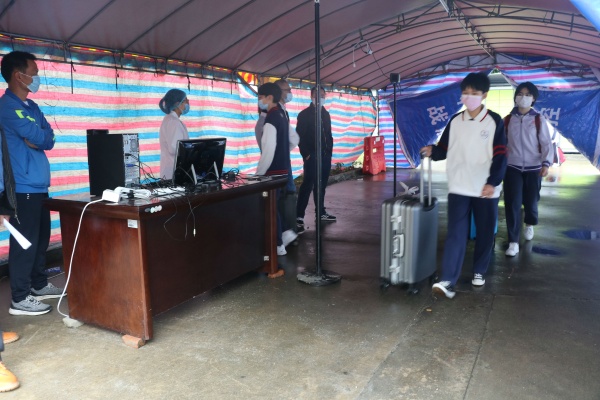 28日早上9:00,所有參演人員及觀摩人員以前后1.5米間隔列隊集中。東升中學(xué)德育處副主任黎國明就演練流程和注意事項作了詳細講解。隨后,初、高中共16名學(xué)生嚴格按照入校流程、根據(jù)地面標識保持間距、佩戴口罩依次入校。值日行政、工作人員對入校學(xué)生體溫進行嚴密監(jiān)測。如發(fā)現(xiàn)體溫異常并伴有咳嗽癥狀學(xué)生,則由身著隔離服的引領(lǐng)員帶到隔離區(qū),校醫(yī)將為其重測體溫,了解相關(guān)信息,并做好記錄。體溫恢復(fù)正常的,進入教學(xué)區(qū);體溫不正常的,向?qū)W校領(lǐng)導(dǎo)匯報。對于沒有流行病學(xué)史的人員,通過電話告知家長接回去;如果家長不能接,按要求及時送到東升醫(yī)院就醫(yī)。