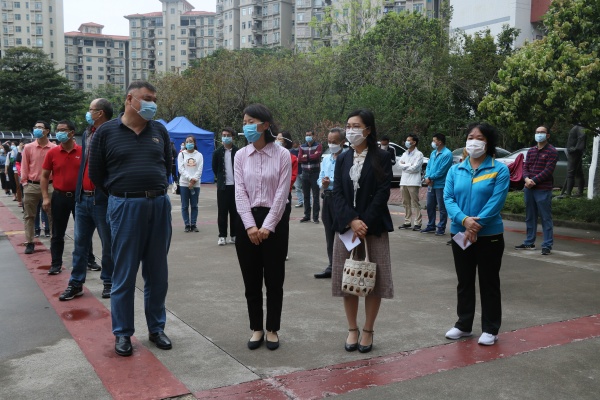 3月28日上午,東升中學(xué)與東升高中兩所學(xué)校新冠肺炎疫情防控小組組織部分教職工和16名學(xué)生到校舉行學(xué)生開學(xué)復(fù)課入校暨新冠肺炎疫情防控應(yīng)急處置演練活動。中山市教體局保健所黃思哲所長、郭醫(yī)生,中山市疾病預(yù)防控制中心王曼副主任,東升鎮(zhèn)教育事務(wù)指導(dǎo)中心領(lǐng)導(dǎo),兩所學(xué)校校級領(lǐng)導(dǎo)、各部門負責(zé)人、全體班主任以及東升鎮(zhèn)兄弟學(xué)校安全主管領(lǐng)導(dǎo)等人員全程觀看了每個演練環(huán)節(jié)。