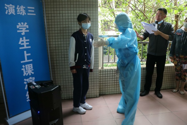 本次聯(lián)合演練是根據(jù)廣東省教育廳有關(guān)疫情防控和開學(xué)準備工作的指示精神及市教體局保健所等疫情防控指引的有關(guān)流程要求而進行的。目的在于通過實地模擬演練,為做實做細開學(xué)復(fù)課準備工作,檢驗學(xué)校開學(xué)預(yù)案和新冠肺炎疫情防控應(yīng)急處置預(yù)案的科學(xué)性、規(guī)范性和可操作性,確保開學(xué)復(fù)課后新冠肺炎疫情防控突發(fā)事件能得到及時有效處置,提高疫情防范和應(yīng)急處置能力,保障兩校師生員工的身體健康和生命安全,維護學(xué)校正常的教育教學(xué)秩序和學(xué)校穩(wěn)定奠定堅實的基礎(chǔ)。本次演練主要圍繞演練培訓(xùn)、入校檢測、宿舍檢測、課堂模擬、突發(fā)病例處理、飯?zhí)镁筒脱菥毜攘蟓h(huán)節(jié),每個環(huán)節(jié)均進行嚴格把關(guān)。演習(xí)具體流程如下: