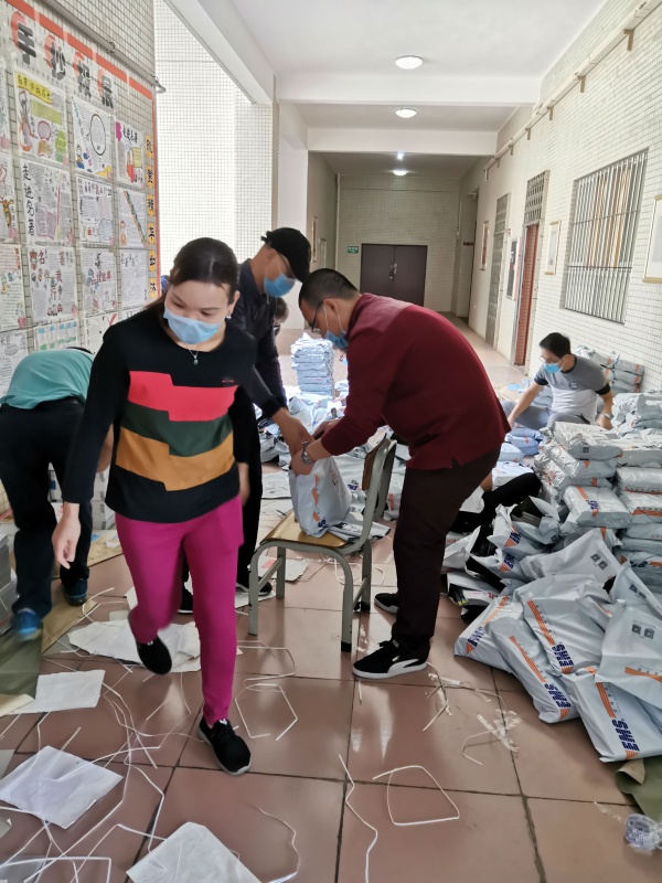 2月29日,東升中學(xué)部分教職員工在吳耀光校長(zhǎng)的帶領(lǐng)下,分裝打包學(xué)生教材近20000本,并與郵政快遞公司緊密合作,將學(xué)生教材以最安全和最快捷的方式點(diǎn)對(duì)點(diǎn)地寄達(dá)學(xué)生手上。