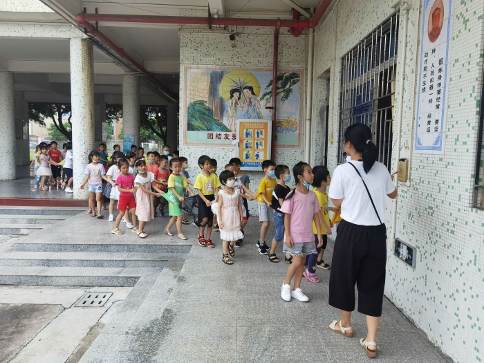 孩子們?cè)诶蠋煄ьI(lǐng)下,走出教室,認(rèn)識(shí)學(xué)校的場(chǎng)地環(huán)境??吹綄掗煹牟賵?chǎng),小朋友們不禁感嘆:“好大呀!”相信不久之后就可以看到他們?cè)诓賵?chǎng)運(yùn)動(dòng)的身影了。