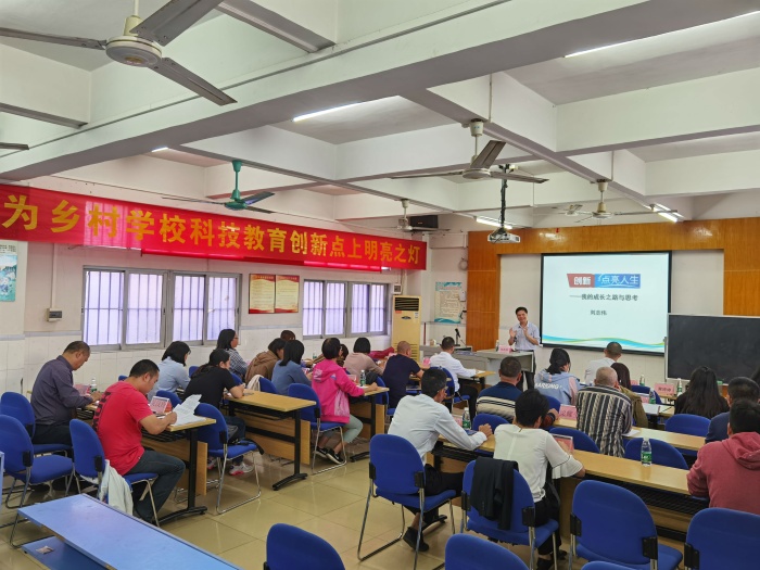 10月19日下午,廣東省知識產(chǎn)權(quán)研究會中小學教育專業(yè)委員會副主任、九江鎮(zhèn)中學榮譽校長、正高級教師、特級教師、國家名師、國培專家劉志偉老師蒞臨阜沙鎮(zhèn)豐聯(lián)小學,以“創(chuàng)新,點亮人生”專題為豐聯(lián)小學全體教師進行了一場青少年科技創(chuàng)新教育的指導培訓。