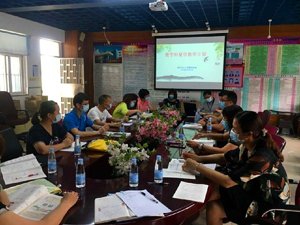 首先,吳文海副校長對這次數(shù)學科復學教學計劃研討活動進行安排,明確活動的具體要求。吳文海副校長以自己所教的三(3)班數(shù)學為例子來介紹復學教學計劃的制定。他分別從上一學期學生成績基本情況分析、線上教育情況的分析、復學后提高教學質(zhì)量的具體措施、復學后教學進度安排進行詳細說明。接著,請教育事務指導中心黃鳳英教研員進行指導。她指出復學后授課要按質(zhì)按量完成,要真正做到高效課堂。要把每天的教學內(nèi)容安排出來,以年級為單位嚴格制定教學進度表,利用測試及時發(fā)現(xiàn)不足,然后制定補救措施。隨后,數(shù)學科組分年級進行研討,制定復學后的教學計劃。