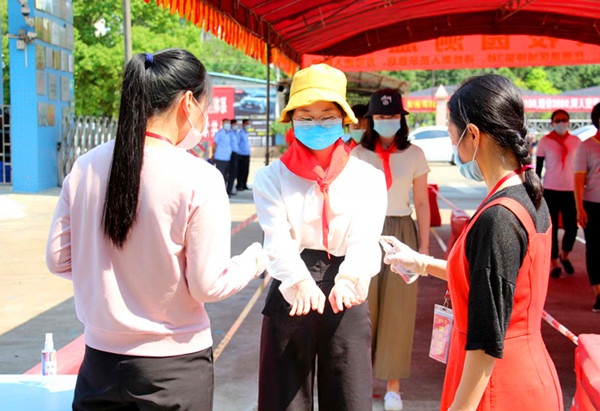 根據(jù)廣東省教育廳《關(guān)于全力防控疫情確保開(kāi)學(xué)安全的通知》、《關(guān)于全員全過(guò)程全方位周密防控確保開(kāi)學(xué)安全的通知》和《中山市中小學(xué)(幼兒園)開(kāi)學(xué)準(zhǔn)備工作導(dǎo)則》的通知等有關(guān)新冠肺炎疫情防控和開(kāi)學(xué)準(zhǔn)備工作的文件精神,阜沙中心小學(xué)安排進(jìn)行新冠肺炎疫情應(yīng)急處置演練,由馬成海副校長(zhǎng)主持,主要情景有:模擬老師駕車上班,值班保安給老師測(cè)量體溫現(xiàn)場(chǎng);模擬上學(xué),值日老師給學(xué)生測(cè)量體溫現(xiàn)場(chǎng);模擬值日老師發(fā)現(xiàn)有學(xué)生體溫高于37.3℃時(shí)處理現(xiàn)場(chǎng);模擬上課某班學(xué)生出現(xiàn)發(fā)熱、嘔吐癥狀時(shí)處理現(xiàn)場(chǎng);模擬學(xué)生午餐現(xiàn)場(chǎng);模擬學(xué)生放學(xué)離?,F(xiàn)場(chǎng)。為了演練更加逼真,學(xué)校成立導(dǎo)演組,根據(jù)學(xué)校一日的教學(xué)活動(dòng)過(guò)程,從上學(xué)、上課、午餐、放學(xué)等環(huán)節(jié)可能出現(xiàn)的情況,編寫(xiě)劇本,每個(gè)情景安排一位行政負(fù)責(zé)排練,經(jīng)過(guò)兩次的彩排,今天的演練非常成功,老師們熟練操作,過(guò)程流暢。