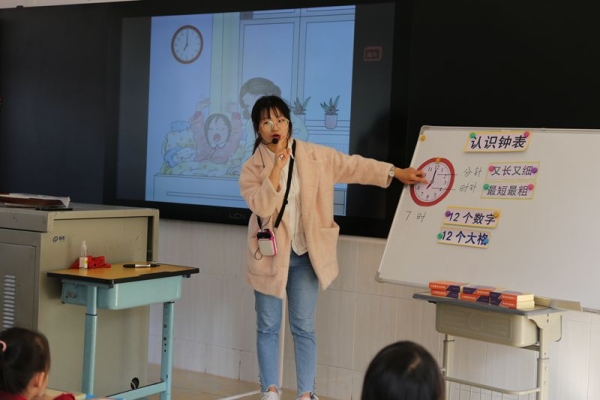 活動開始,首先由開發(fā)區(qū)第四小學章希老師講授一年級數(shù)學課《認識鐘表》,章老師非常重視學生說的能力,高度完成了本節(jié)課的教學目標,通過讓學生說一說,撥一撥,寫一寫,既讓學生親身體驗數(shù)學來源于生活,又能幫助學生積累活動經(jīng)驗。