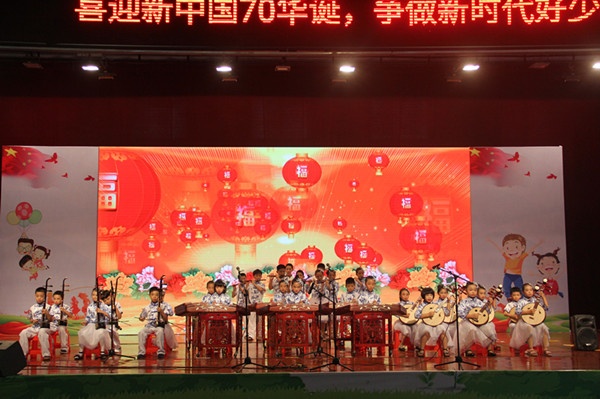 歡樂聲中,活動主持人走上舞臺,熱情地介紹來校參加活動的領導和嘉賓,感謝他們對教育事業(yè)的支持和幫助。伴著歡迎曲,梁業(yè)昌校長健步上臺向全體同學慶祝致辭,祝愿全體同學兒童節(jié)快樂,健康成長。緊接著給支持學校教育的各界人士和單位贈送牌匾,衷心感謝他們的鼎力支持。在主持人宣布下,孩子們精心準備的文藝匯演開鑼了!全場響起熱烈的掌聲,首先出場的是民樂組演奏廣東省音樂大師呂文成先生的作品民樂《青梅竹馬》和粵曲小調《青春少年時?調寄青梅竹馬》。民族樂器中鑼鼓镲鏗鏘有力,二胡的清脆高亢、笛子的柔美悠揚,古箏的典雅優(yōu)美,整個樂曲旋律輕快悠揚,民族之樂韻飄蕩在耳畔令人陶醉。明快的節(jié)奏音樂招喚著身穿艷麗舞蹈服的孩子朝氣蓬勃地舞動起來,一出場就引來臺下孩子們不住的喝彩聲。《快樂拉丁》動感的拉丁舞吸引著全場同學的眼球,同學們?yōu)橹畾g呼,為之鼓掌。與現代氣息有別的傳統(tǒng)民族樂器也帶來另一種音樂享受,民族器樂合奏第一首《乃喲乃》,第二首《鳳陽花鼓》,悠揚清亮的二胡笛子等演奏出無語倫比的音韻,在場的嘉賓、家長、同學無不為他豎起大拇指。精彩的節(jié)目一個接著一個,緊跟著是學校舞蹈隊表演歌舞《魚戲蓮葉間》,一群活活潑潑的“小魚兒”從水中游來,在池塘里與蓮葉相互嬉戲,一陣裊裊的歌聲傳來,蓮葉便在風中搖曳起舞,輕盈的舞姿如行云流水般自然流暢。學校落實“全員育人,全程育人,活動育人”的辦學思想,豐富學生的校園文化生活,學校社團的合唱隊全力奉獻出《小星星》和《春風》兩首歌曲,隊員們清澈的歌聲時而輕柔婉轉,時而跌宕激昂。童聲嘹亮,唱響新時代的贊歌。童聲響起,猶如春風吹來,讓祖國大地生機盎然!好戲繼續(xù)上演,詩書韻味在孩子口中瑯瑯而出,朗誦組的同學表演串讀《經典詩文》,字正腔圓,音韻悠揚,寫在孩子們臉上的多了幾分詩書之氣。精彩的文藝節(jié)目給全校師生真正享受了一場完全屬于自己的藝術盛宴。孩子們都很開心,一個個洋溢著幸福的笑容。