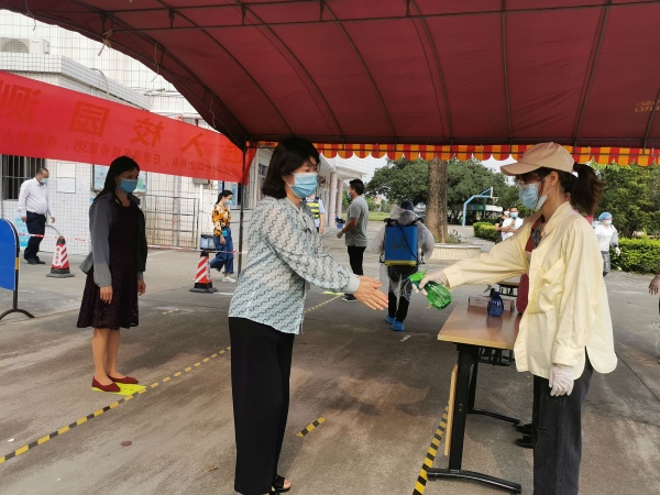 因此,為了貫徹落實(shí)疫情防控期間中山市有關(guān)中小學(xué)2020年春季學(xué)期開學(xué)工作等文件精神,進(jìn)一步提高豐聯(lián)小學(xué)在開學(xué)后的疫情防范和應(yīng)急處置能力,保障全校師生的身體健康和生命安全,維護(hù)學(xué)校正常的教育教學(xué)秩序和校園穩(wěn)定,豐聯(lián)小學(xué)特在21日開展本次新冠肺炎防控應(yīng)急演練,阜沙鎮(zhèn)黨委副書記孫海卿、鎮(zhèn)文教衛(wèi)計(jì)局局長(zhǎng)黃桂生、鎮(zhèn)教指中心主任徐瑞欽,教研員黃盛強(qiáng)、陳凱冰、吳雪儀老師等蒞臨豐聯(lián)小學(xué)進(jìn)行了參觀與指導(dǎo)。