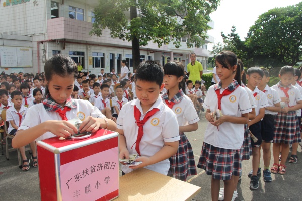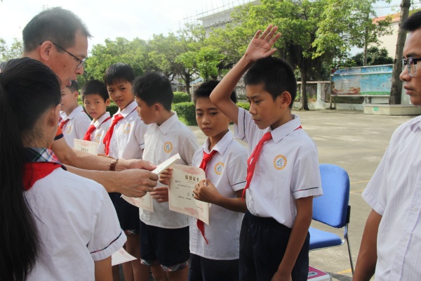 接下來,讓學(xué)生們緊張又興奮的頒獎環(huán)節(jié)到了。學(xué)校行政分別為在德、智、體、美、勞各方面有優(yōu)異成績,在學(xué)習(xí)、紀(jì)律、文明禮儀等方面都表現(xiàn)突出的先進(jìn)學(xué)生進(jìn)行頒獎。鄧留兵同學(xué)獲中山市優(yōu)秀少先隊(duì)員稱號;學(xué)校足球隊(duì)在阜沙鎮(zhèn)2019年足球聯(lián)賽中獲小學(xué)組亞軍;楊浩等12名學(xué)生獲得三好學(xué)生;李妍琪等12名學(xué)生獲得優(yōu)秀班干部......校園里不時響起陣陣熱烈的掌聲,為這些努力進(jìn)取的同學(xué)們送上肯定和贊揚(yáng)。在頒獎結(jié)束后,學(xué)校還在本次散學(xué)禮上進(jìn)行了響應(yīng)“決戰(zhàn)脫貧攻堅,助力鄉(xiāng)村振興”的廣東扶貧濟(jì)困日捐款儀式。師生們紛紛進(jìn)行捐款,傳遞愛心,營造希望。