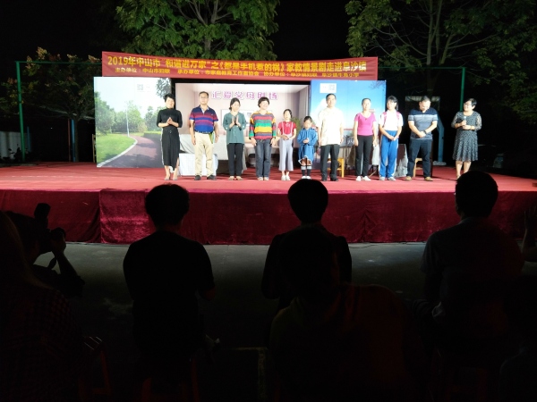 為更好、更深入推進(jìn)家庭教育工作,11月1日晚,由中山市婦聯(lián)主辦,阜沙鎮(zhèn)婦聯(lián)、阜沙鎮(zhèn)牛角小學(xué)協(xié)辦的2019年中山市“和諧進(jìn)萬(wàn)家”之《都是手機(jī)惹的禍》家教情景劇,在阜沙鎮(zhèn)牛角小學(xué)舞臺(tái)上演。牛角小學(xué)的家長(zhǎng)與孩子也早早到達(dá)活動(dòng)現(xiàn)場(chǎng),靜待活動(dòng)的開(kāi)始。