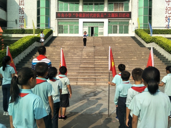 為慶祝中華人民共和國(guó)成立70周年,紀(jì)念少先隊(duì)建隊(duì)70周年,喜迎少先隊(duì)廣東省第七次代表大會(huì)的召開(kāi),2019年10月12日上午,牛角小學(xué)少先隊(duì)組織開(kāi)展“爭(zhēng)做新時(shí)代好隊(duì)員”主題隊(duì)日活動(dòng),本次活動(dòng)由大隊(duì)輔導(dǎo)員王娟娟老師主持。