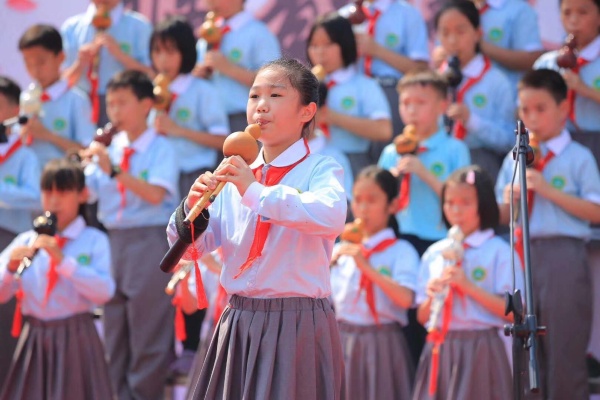 表演中,多個班級大膽創(chuàng)新,除了吹奏之外,舞蹈、變化的隊形、亮眼的服飾等都成了精彩的得分點,一首接一首,整個校園回蕩著葫蘆絲和悠揚(yáng)的聲音。