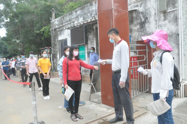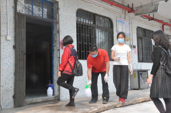 這次演練以鄭新為組長(zhǎng)、副組長(zhǎng)梁榮忠、 健康副校長(zhǎng)楊潔煒,整個(gè)演練設(shè)立疫情演練評(píng)估,疫情監(jiān)測(cè),現(xiàn)場(chǎng)消毒,信息排查,疫情隔離以及宣疫情傳維穩(wěn)等環(huán)節(jié)。演練全體老師扮學(xué)生排隊(duì)等候進(jìn)入校園,戴口罩,手持健康卡,并保持一米間距分兩條通道有序進(jìn)入校園。學(xué)生進(jìn)入學(xué)校時(shí)要依次走過(guò)測(cè)溫區(qū),檢測(cè)人員在二邊用測(cè)溫儀對(duì)學(xué)生逐個(gè)進(jìn)行體溫檢測(cè),并對(duì)學(xué)生自行車、書包等物品進(jìn)行消毒。體溫正常、無(wú)其他癥狀者,有序進(jìn)入班級(jí)上課。對(duì)于體溫異常的學(xué)生由專人帶至隔離區(qū), 送至復(fù)測(cè)區(qū),由校醫(yī)再次用水銀溫度計(jì)對(duì)學(xué)生體溫進(jìn)行檢測(cè)。同時(shí)將此生經(jīng)過(guò)的通道消毒并封閉。學(xué)生進(jìn)入課室前再次由班主任進(jìn)行體溫測(cè)試,并做好登記。對(duì)于學(xué)生在課堂中出現(xiàn)身體發(fā)熱突發(fā)事件,學(xué)校工作小組也是做了周密的應(yīng)對(duì)部署。