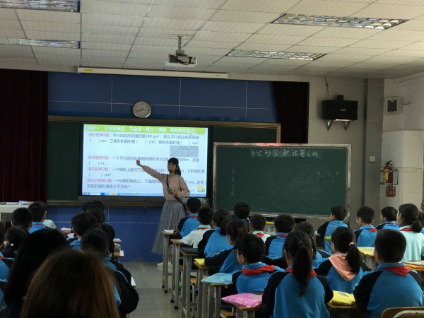 活動首先由陳芳蘭老師帶領(lǐng)五(1)班的孩子結(jié)合一體機和希沃軟件的使用上了一節(jié)精彩的復(fù)習(xí)課,結(jié)合多邊形面積的練習(xí)開展授課。陳老師以小組自治、合作糾錯引入,引導(dǎo)學(xué)生回憶單元知識,建立知識框架。其次的師生一同總結(jié)單元錯題原因:第一,不注意單位,不會舉一反三;第二,沒有溝通好圖形之間的練習(xí);第三,讀題能力弱,找數(shù)據(jù)不準(zhǔn);第四,不會借助圖形結(jié)合解決問題。隨后陳老師逐一問題結(jié)合練習(xí)攻破,幫助學(xué)生鞏固知識。在課堂上,學(xué)生真正成為學(xué)習(xí)的主人,積極參與教學(xué)的每一個環(huán)節(jié),努力地探索解決問題的方法,大膽地發(fā)表自己的觀點。在評課議課環(huán)節(jié),評課老師表示通過小組合作學(xué)習(xí),學(xué)生思維得到鍛煉和發(fā)展。