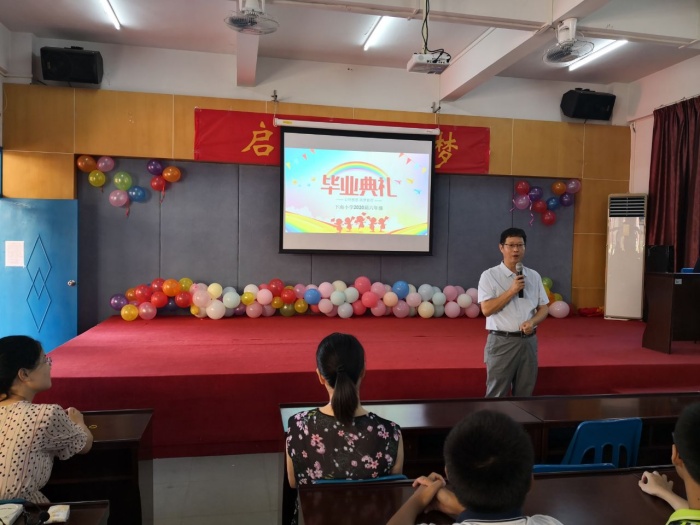 畢業(yè)典禮由學校校長的致辭拉開序幕,校長在致辭中提到過去的輝煌屬于過去,從小學升上初中,將會是一個新的里程,同學們應該帶著希望展望未來,他對畢業(yè)生寄予了厚望——相信優(yōu)秀的他們,以后一定會有錦繡的前程!校長致辭過后,大屏幕播放了本屆畢業(yè)生小學六年學習生活的視頻,在感人的視頻中,同學們留下了美好的回憶,也流下了心酸的淚水。