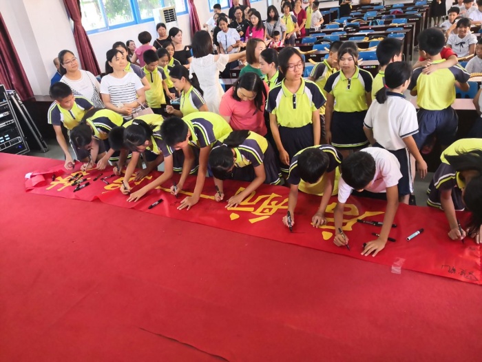 面對著優(yōu)秀的他們,在場的學校領導、老師、家長,都為他們感到驕傲和自豪。他們的優(yōu)秀離不開自身堅持不懈的努力,當然也離不開學校的栽培。為了感謝學校對學生們的悉心培育,兩個畢業(yè)班的全體師生、家長為學校獻上他們專門定制的紀念品,留給母?;荽妗?/p>