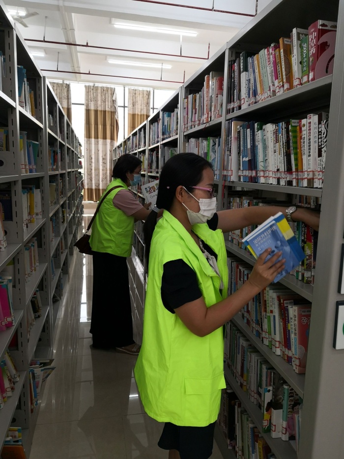 在港口鎮(zhèn)文體中心圖書館、麗江花園小區(qū)圖書館等地方也能看到有一群小志愿者攜同家長參與書籍整理等志愿服務(wù)活動(dòng)。孩子們?cè)诩议L的引導(dǎo)下,認(rèn)真整理書架上的書籍,分門別類地把書籍?dāng)[放好,修補(bǔ)有破損的圖書。書架上那一本本整齊擺放的漂亮圖書展現(xiàn)著孩子們的勞動(dòng)成果?!拔拿骺磿钡睦砟钜睬娜恢哺诤⒆拥男闹?。