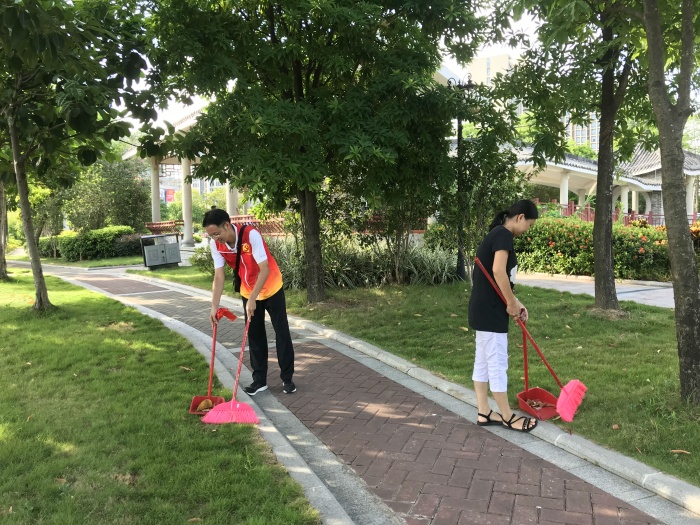 當天上午,學校的黨員教師志愿者們積極投身到志愿服務活動中。志愿者們帶著掃把、垃圾鏟和垃圾袋等工具對公園進行清潔,大家干勁十足,在公園每一處角落尋找“戰(zhàn)利品”。認真撿拾草坪上的落葉,清理綠化帶的紙屑、煙蒂、塑料袋等生活垃圾,直到每個人的手中“戰(zhàn)果累累”。有的黨員志愿者還帶上了自己的孩子,大手牽小手一同勞動,從草坪到花地,每一處都是綠色環(huán)保小衛(wèi)士的身影?;顒舆^程中,志愿者們相互協(xié)作,不怕臟、不怕累,經(jīng)過近兩小時的清潔,中山市濕地公園煥然一新,整潔的氛圍讓公園變得更加美麗溫馨。