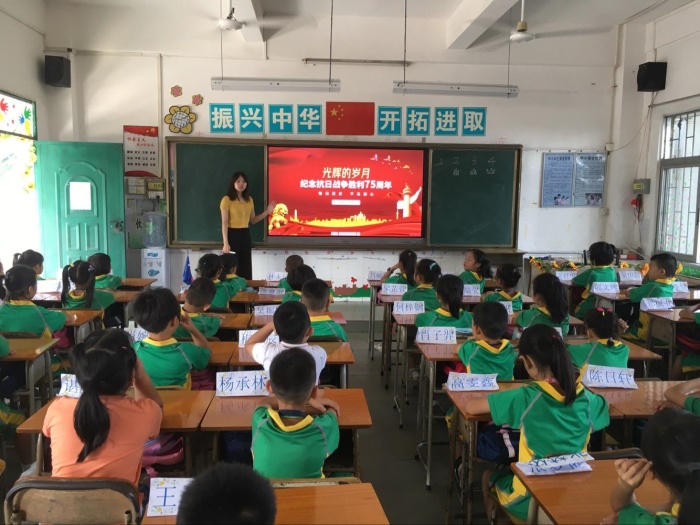 各年級(jí)各班根據(jù)學(xué)生年齡特點(diǎn),精心選擇合適的活動(dòng)內(nèi)容,采用學(xué)生易于接受的活動(dòng)形式,組織開展活動(dòng)。老師們向?qū)W生簡(jiǎn)單的介紹了發(fā)生在70多年前那場(chǎng)戰(zhàn)爭(zhēng)的相關(guān)史實(shí),有的班級(jí)給孩子們講述了抗日小故事,有的班級(jí)組織觀看抗日題材電影;有的班級(jí)組織觀看抗日史料圖片展。王二小、小英雄雨來、狼牙山五壯士……一個(gè)個(gè)抗戰(zhàn)英雄的故事;《地道戰(zhàn)》《南京大屠殺》《平原游擊隊(duì)》……一部部抗戰(zhàn)主題的影片;一張張日本侵略者血腥屠殺中國(guó)百姓的照片;一段中華民族深受蹂躪的屈辱歷史的回顧。