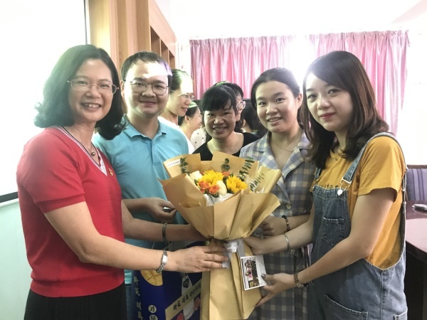 活動(dòng)在青年教師代表施惠群老師、周艷珍老師和林文佳老師的成長(zhǎng)感言中拉開序幕。周老師談到大豐小學(xué)是她的幼兒園,而蘇少麗校長(zhǎng)就是她的啟蒙老師,在日常的教學(xué)中,周老師感受到了蘇校長(zhǎng)對(duì)她的指導(dǎo)與幫助。 “點(diǎn)滴之恩當(dāng)涌泉相報(bào)”,青年教師對(duì)導(dǎo)師們飽含深情的感恩之言把活動(dòng)推向高潮,各位青年教師以自己喜歡的方式向?qū)煴磉_(dá)感激之情,有熱情的擁抱,有鮮艷的花束,也有寫滿溫情話語(yǔ)的明信片。