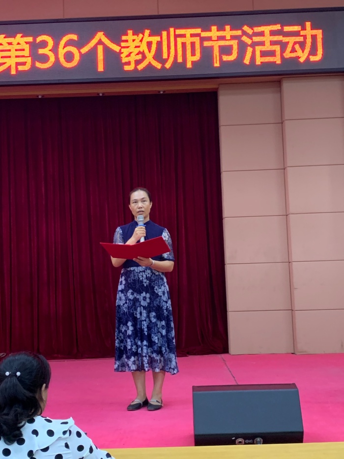 為慶祝教師節(jié),學(xué)校工會(huì)特舉行教師節(jié)聯(lián)歡活動(dòng),活動(dòng)由劉亞、何露兩位老師主持。活動(dòng)伊始,學(xué)校黨支部書(shū)記章小蘭同志向?qū)W校全體教職員工表示節(jié)日的祝賀和衷心的問(wèn)候,她充分肯定老師們的辛勤付出,大力贊揚(yáng)老師們無(wú)私奉獻(xiàn)的精神。