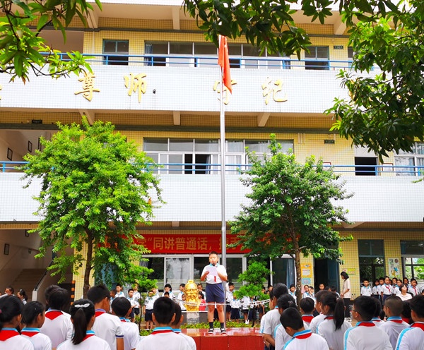 9月14日上午,推普周系列活動(dòng)啟動(dòng)儀式在石特小學(xué)舉行。六(2)班劉偉欽同學(xué)在國(guó)旗下發(fā)出倡議,倡議大家自覺(jué)說(shuō)好普通話、寫(xiě)好規(guī)范字,熱愛(ài)祖國(guó)的語(yǔ)言文字,崇尚中華優(yōu)秀傳統(tǒng)文化,樹(shù)立高度的文化自覺(jué)和文化自信,全面展現(xiàn)石特小學(xué)師生的文明新形象。劉同學(xué)的深情演講引起大家的共鳴。讓推普之花開(kāi)遍校園的每一個(gè)角落,讓普通話成為人人交往的紐帶和溝通的橋梁。
