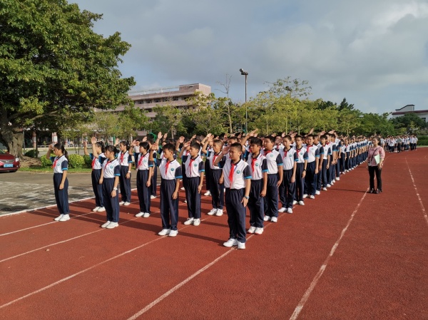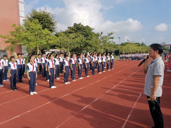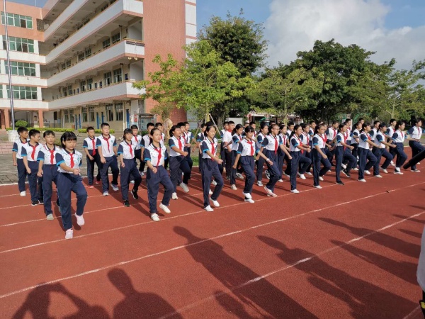 2020年9月21日,秋風(fēng)微涼,金桂飄香,港口鎮(zhèn)大南中學(xué)2020級(jí)初一新生入學(xué)訓(xùn)練成果匯演在足球場(chǎng)拉開序幕。