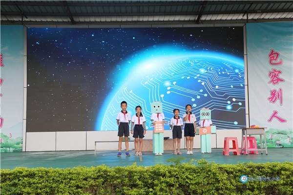 首先,四(3)班的孩子們?yōu)榇蠹冶硌萘司脑O(shè)計(jì)的科技校園?。骸吨悄苌?,美麗人生》。劇中生動(dòng)形象的生活場(chǎng)景,帶領(lǐng)師生們體驗(yàn)了一把享受智能生活的一天。同學(xué)們紛紛表示生活中那些精準(zhǔn)、貼心的智能設(shè)備,真的太方便了,有了它們我們的生活更精彩、更便捷、更舒適。