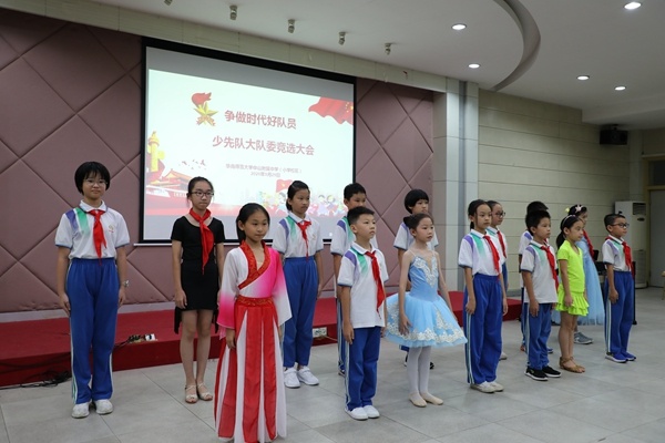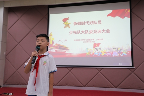 為充分展示少先隊員的風(fēng)采,提升他們的個人綜合素質(zhì),給他們一個鍛煉和展示自我的機(jī)會,優(yōu)化大隊部結(jié)構(gòu),為少先隊注入新鮮血液。2020年9月29日晚上,中山華附小學(xué)校區(qū)在學(xué)校報告廳舉行了少先隊大隊委競選活動。