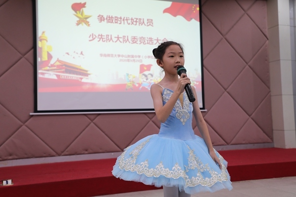 本次大隊委競選活動由三、四、五年級各中隊推選一名隊員參加。首先,他們依抽簽順序,分別進(jìn)行競職演講及才藝展示。候選隊員們通過激情飽滿的演講以及彰顯個性的才藝展示,贏得了與會少先隊員代表們的陣陣掌聲。
