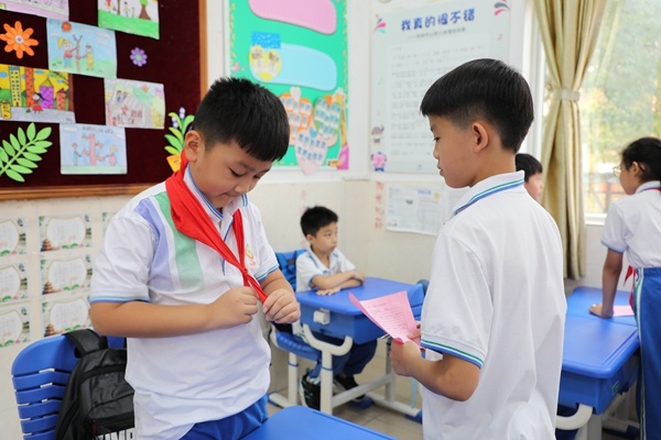 中山華附小學校區(qū)入隊教育讓每一位準隊員在濃濃的少先隊文化中快樂學習、自信成長。同學們,為自己即將成為一名少先隊員而驕傲與自豪吧!愿你們以誠實勇敢、活潑團結(jié)的作風為少先隊增光添彩!