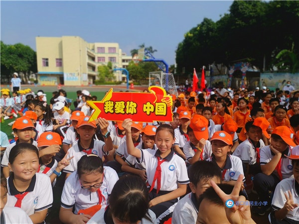 升旗儀式結束后,羅希京委員和冼偉明局長向學生代表贈送了愛國卡,希望同學們心里裝著祖國、肩上扛起責任、前行學習英雄。參會嘉賓和民主小學的師生們一起,在拼有中國地圖的愛國墻上簽名,表達了對祖國的真摯祝福,共同祝福偉大祖國繁榮昌盛!