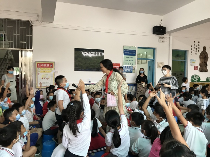 10月13日下午,在淅淅瀝瀝的雨聲中,在老師們的帶領(lǐng)下,著名兒童文學作家郁雨君來到了港口鎮(zhèn)中南小學,給孩子們帶來了一場以“故事的種子從哪里來”為主題的精彩講座。
