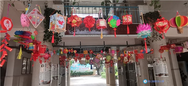 接著,學(xué)校對(duì)各班上交的燈籠進(jìn)行精心評(píng)選,共評(píng)選出兩百多個(gè)設(shè)計(jì)精巧、色彩繽紛、獨(dú)具匠心的燈籠作品。一串串富有傳統(tǒng)文化氣息的燈籠于學(xué)校中庭展示,課間引來(lái)師生們的觀賞。