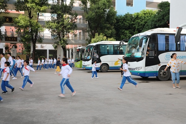 疏散演練活動開始前,校車接送老師指導(dǎo)學(xué)生上車系好安全帶,并對校車發(fā)生的意外可能性、處理措施、逃生自救技巧、消防基本常識等進(jìn)行了詳細(xì)講解,并告知學(xué)生遇到緊急情況時應(yīng)保持冷靜、聽從指揮。