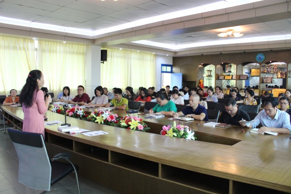 首先,副校長廖建紅簡介了《教育春秋》一書的整體建構和作者熊海敏,該書從“中國古代神話中的教與育”談到“教育展望”,分析對比古今中外教育思想、教育制度、教育管理、教育內容、教育方法、教育形式等,從古代教育及現代教育發(fā)展歷程中尋覓中華偉大復興的教育大道。廖建紅副校長重點圍繞“教育與修身”一章節(jié)談感想,她說教育需要信仰,在教育生涯中,教師要注重修德、修心、修行、修智、修禪、修善、修道,關注學生的健康成長和終身幸福。學會做有溫度的老師,做有厚度的教育。