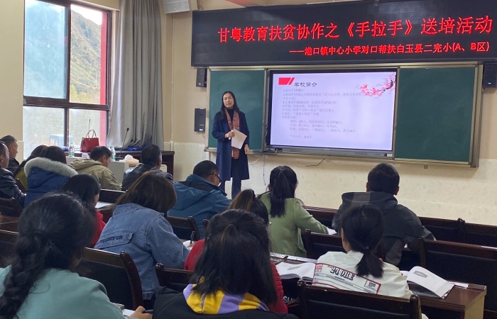 為貫徹落實(shí)國家和省委省政府關(guān)于教育對口支援,助力四川省白玉縣扶貧協(xié)作教育事業(yè)深入發(fā)展,加強(qiáng)中山市和甘孜州白玉縣兩地學(xué)校的交流合作,2020年10月15日至22日,港口鎮(zhèn)中心小學(xué)支部書記章小蘭同志帶領(lǐng)學(xué)校五位骨干教師到四川省甘孜州白玉縣城區(qū)第二完全寄宿制學(xué)校(以下簡稱白玉縣二完?。╅_展送培、送教活動(dòng)。