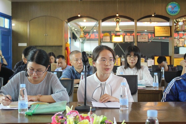 學(xué)科研討結(jié)束后,所有人員集中四樓榮譽(yù)室進(jìn)行跟崗教師學(xué)習(xí)成果匯報(bào)。跟崗教師代表梁樂儀、張慧明、符曉霞談了此次跟崗學(xué)習(xí)的心得體會(huì),她們首先感謝了鎮(zhèn)教育和體育事務(wù)中心和華師附中提供的這次學(xué)習(xí)機(jī)會(huì)。在跟崗學(xué)習(xí)中,華師附中優(yōu)美整潔的校園環(huán)境、內(nèi)涵厚重的校園文化、全面精細(xì)的教學(xué)管理讓她們感受到名校的魅力;華師附中教師的敬業(yè)負(fù)責(zé)、對(duì)學(xué)生的熱心關(guān)愛讓她們認(rèn)識(shí)到教育的真諦?!敖逃粌H是一項(xiàng)藝術(shù),更是一項(xiàng)偉大的事業(yè)!”“教育是愛,有情懷、有愛的老師才能走得更遠(yuǎn)!”新老師的收獲詮釋了此次跟崗學(xué)習(xí)活動(dòng)舉辦的必要性。