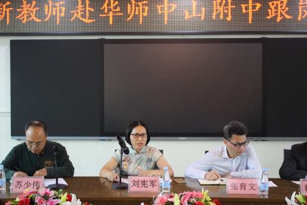 接著,大南中學(xué)副校長廖建紅發(fā)言,她說青年教師是學(xué)校的未來和希望,大南中學(xué)一直以來重視青年教師成長,通過青藍(lán)工程、新老師校級(jí)匯報(bào)課、新老師座談等各種形式助力新老師成長,她希望新老師們熱愛教育事業(yè),不忘學(xué)習(xí),不斷提高自己的教育教學(xué)水平,盡快成長起來!