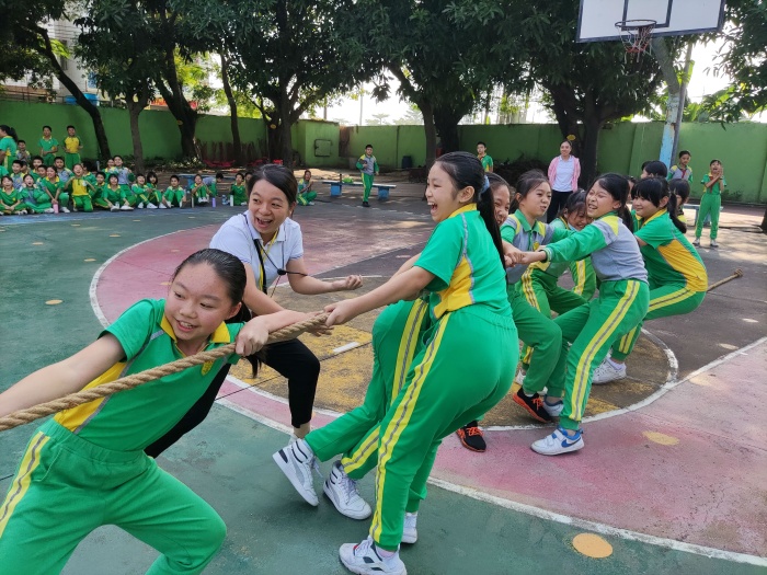 迎著秋日的陽光,伴隨著收獲的季節(jié),11月6日下午,港口港源學校高年級組在學校籃球場上,開展了以“積極、向上、團結、奮進、健康、運動”為宗旨的趣味游戲活動。