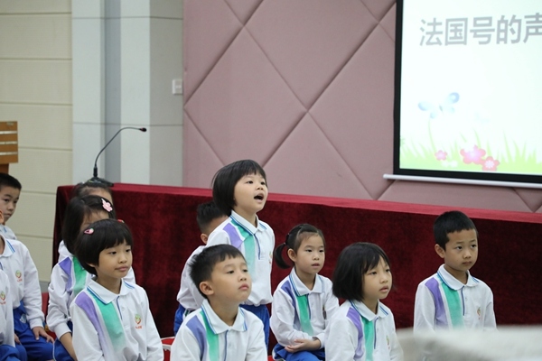 第二節(jié)課是華附小學(xué)校區(qū)的陳小靜老師執(zhí)教的二年級(jí)《嗩吶配喇叭》第二課時(shí)。本節(jié)課陳老師根據(jù)二年級(jí)孩子的特點(diǎn)創(chuàng)設(shè)情景,用闖關(guān)的方式激勵(lì)學(xué)生們學(xué)習(xí),用生動(dòng)的語言,優(yōu)美的肢體動(dòng)作和動(dòng)聽的歌聲讓學(xué)生感受美、體驗(yàn)美、表現(xiàn)美。由于是第二課時(shí),熟歌練本領(lǐng),陳小靜老師運(yùn)用柯達(dá)伊教學(xué)法,讓學(xué)生們?cè)谝魷?zhǔn)、節(jié)奏、聽覺上都有了基本認(rèn)知,對(duì)于提高孩子們的音樂基本素養(yǎng)非常有幫助。