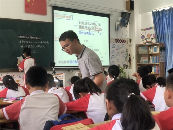 課題組成員葉露老師首先展示了《實際問題與方程(2)》這節(jié)匯報課。葉露老師精心設(shè)計教學(xué)環(huán)節(jié),圍繞課堂內(nèi)容引導(dǎo)學(xué)生在轉(zhuǎn)變題目句式中理解題意,在借助畫圖策略分析中明晰數(shù)量關(guān)系,通過小組討論進(jìn)一步總結(jié)解題方法,取得了良好的教學(xué)效果。