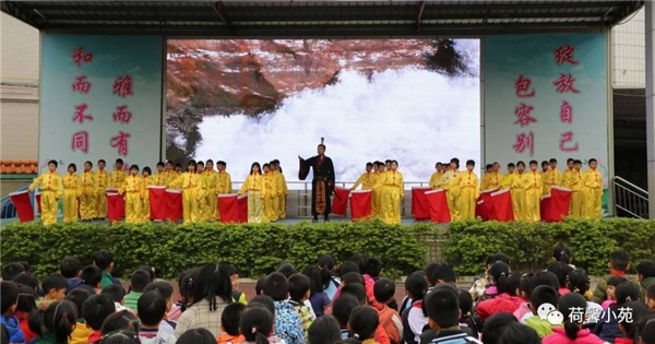 活動中,大家集中到操場參加了“不忘初心 荷韻悠揚”文藝展演。本次文藝展演活動的主題是“弘揚中華優(yōu)秀傳統(tǒng)文化”,這也是民主小學(xué)“中華優(yōu)秀傳統(tǒng)文化教育月”系列活動的延伸與升華。